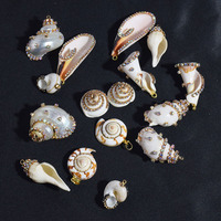 Girl's Single Colorful Diamond Conch Shell Pendant DIY Jewelry Necklace Ocean Style Fashionable Pendants Charms for Children