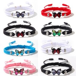 Hete Aanbieding Druppel Olie Vlinder Charm Armband Handgeweven Verstelbare Knoop Vriendschap Paar Vrouwen Zinklegering Verguld Armband