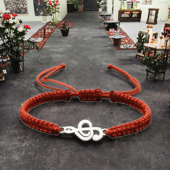 เชือกถักสีแดงทำด้วยมือสำหรับสร้อยข้อมือพร้อมโน้ตดนตรีสแตนเลสสร้อยข้อมือมิตรภาพสไตล์น่ารักสร้อยข้อมือของขวัญ